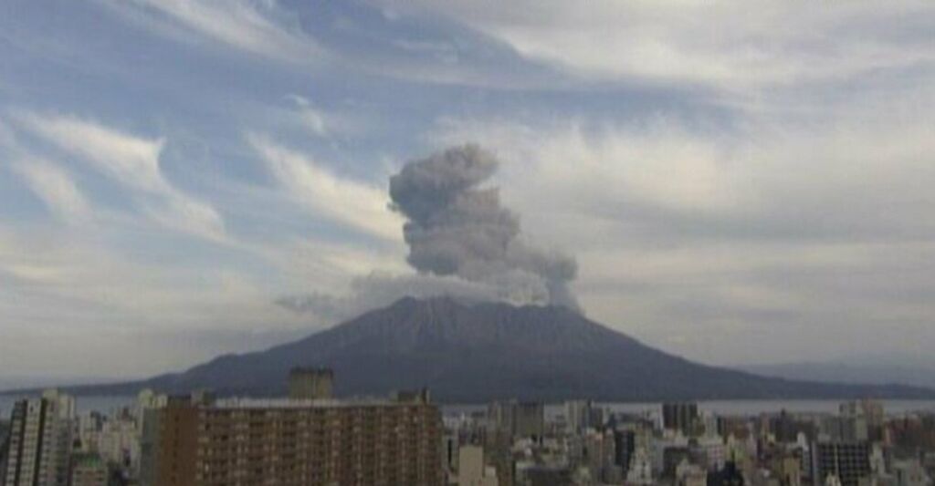 當?shù)貢r間1月19日15時26分左右,日本鹿兒島縣櫻島南岳山頂火山口發(fā)生噴發(fā),火山灰柱最大高度達2000米。(總臺報道員 柏春洋)