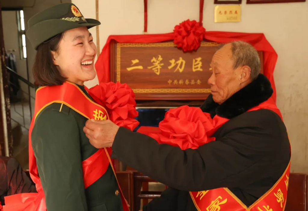 近期,陸軍第72集團軍某旅開展“榮譽送家鄉(xiāng)”活動,送喜報小分隊來到湖北省黃岡市蘄春縣南門畈社區(qū),向該旅少尉余沛及其家屬送上二等功喜報和“二等功臣之家”牌匾。余沛,1997年9月出生,2018年參軍入伍。2024年年初,余沛帶領(lǐng)一支女子特戰(zhàn)隊高標準完成陸軍新時代“郭興福式”教學法,課目演示實現(xiàn)首發(fā)命中、發(fā)發(fā)命中。