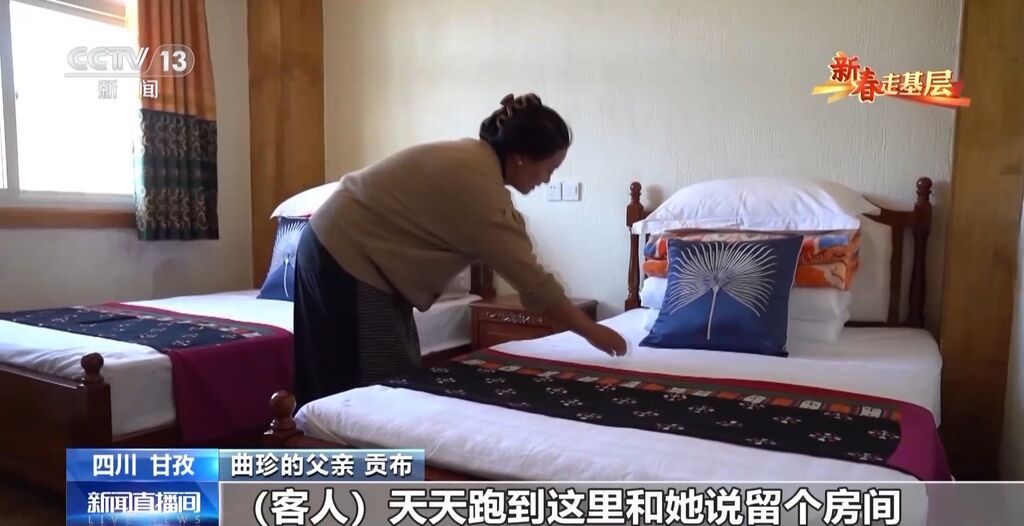曲珍的父親 貢布:客人天天跑到這里和她說留個房間,大概七月份到八月份都有客人。