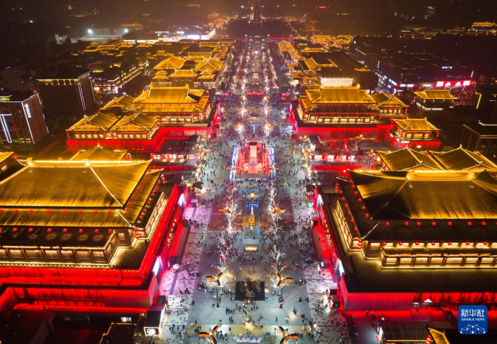 西安大唐不夜城景色。新春佳節(jié)臨近,古城西安流光溢彩,燈火璀璨,洋溢著濃濃的年味。