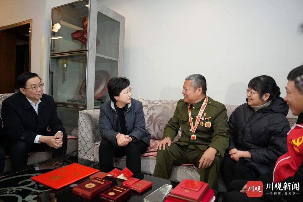 成都市金牛區(qū)荷花池街道白馬寺街31號院是建于上世紀80年代的單位職工宿舍。施小琳來到這里,察看特色街區(qū)打造和老舊院落改造、公共空間利用情況,要求抓住政策窗口期,加力推進城市有機更新和老舊小區(qū)改造提升,更加注重“里子”工程,完善教育、養(yǎng)老、醫(yī)療、托幼等公共服務(wù)功能,持續(xù)提升人居環(huán)境,讓老舊院落更有煙火氣文化味人情味、群眾更有獲得感幸福感安全感。施小琳隨后入戶看望生活困難老黨員趙素英,詢問老人生活身體狀況,感謝老職工們?yōu)槿“l(fā)展打下的堅實基礎(chǔ),送上新春的美好祝福,并叮囑街道社區(qū)及時幫助解決實際困難,讓老人安享幸福晚年。施小琳還來到成華區(qū)華油路優(yōu)撫對象范仲奎家中,通過一枚枚軍功章紀念章,詳細了解這位“炮兵偵察英雄”的英勇戰(zhàn)斗故事和轉(zhuǎn)業(yè)工作經(jīng)歷,向他在保衛(wèi)國家、建設(shè)國家中作出的貢獻表示敬意和感謝,并致以新春祝福,希望他永葆軍人本色,在社區(qū)公益、關(guān)心下一代等方面繼續(xù)亮出黨徽、發(fā)揮余熱,要求有關(guān)方面落實好優(yōu)撫政策,細致做好優(yōu)撫對象服務(wù)保障,傳承紅色精神,在全社會大力倡導(dǎo)尊崇英雄、爭當英雄的良好風(fēng)尚。