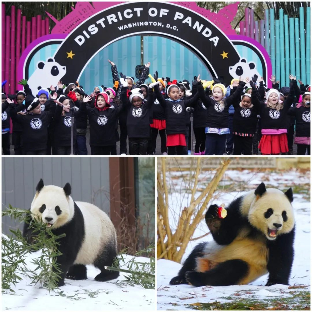 ·美國國家動物園新一對大熊貓“寶力”和“青寶”首次與公眾見面。