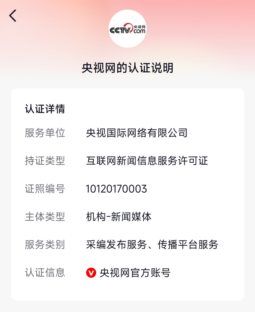·網(wǎng)信辦推進實施“持證亮牌”工程,對獲得許可提供互聯(lián)網(wǎng)新聞信息服務(wù)的公眾賬號統(tǒng)一增加紅“V”標識。