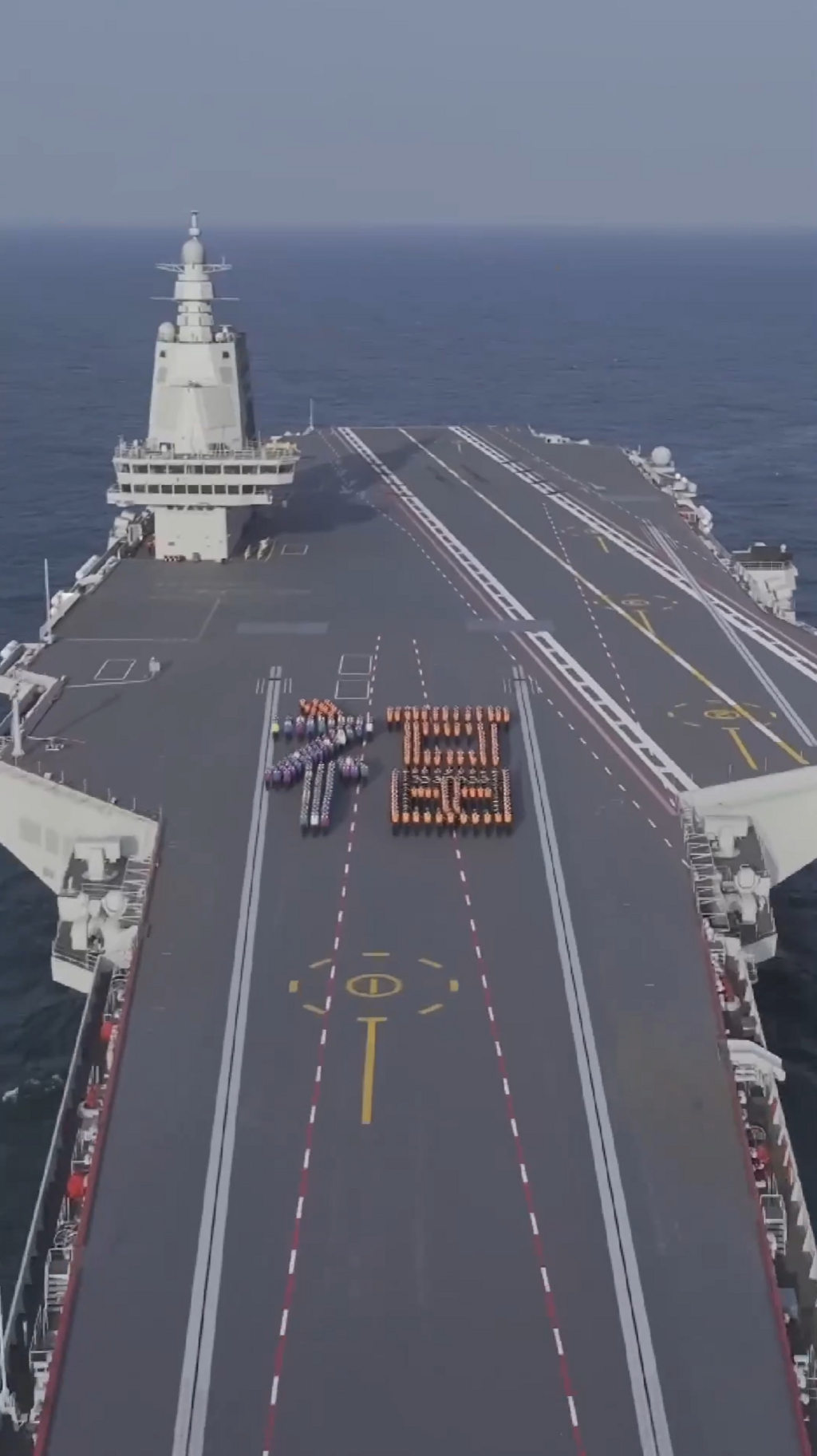 福建艦官兵在飛行甲板上整齊列隊,組成巨大的“福”字,祝全國人民新春快樂!網(wǎng)友:“來自咱家航母的祝福,這可能是最硬核的新春祝福了!”