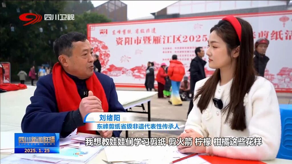 東峰剪紙省級(jí)非遺代表性傳承人 劉緒陽(yáng):我想教娃娃們學(xué)習(xí)剪紙,剪火箭、檸檬、柑橘這些花樣,讓他們了解我們家鄉(xiāng)的發(fā)展,也為我們資陽(yáng)送上新春的祝福。