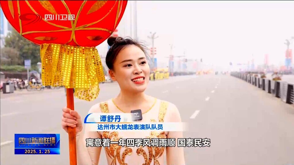 達(dá)州市大蠕龍表演隊(duì)隊(duì)員 譚舒丹:今天我們給大家?guī)?lái)的是大蠕龍的表演,寓意著一年四季風(fēng)調(diào)雨順、國(guó)泰民安。