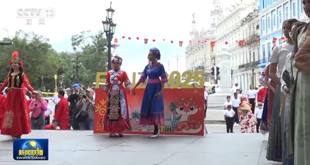 在古巴首都哈瓦那,當(dāng)?shù)厥讓谩皻g樂春節(jié)”中國(guó)廟會(huì)熱鬧開場(chǎng),舞龍舞獅表演、中國(guó)民族服裝秀等節(jié)目讓當(dāng)?shù)孛癖姶箫栄鄹?。文化展臺(tái)前,古巴民眾體驗(yàn)書法、剪紙、茶藝等,收獲屬于自己的新春禮物。