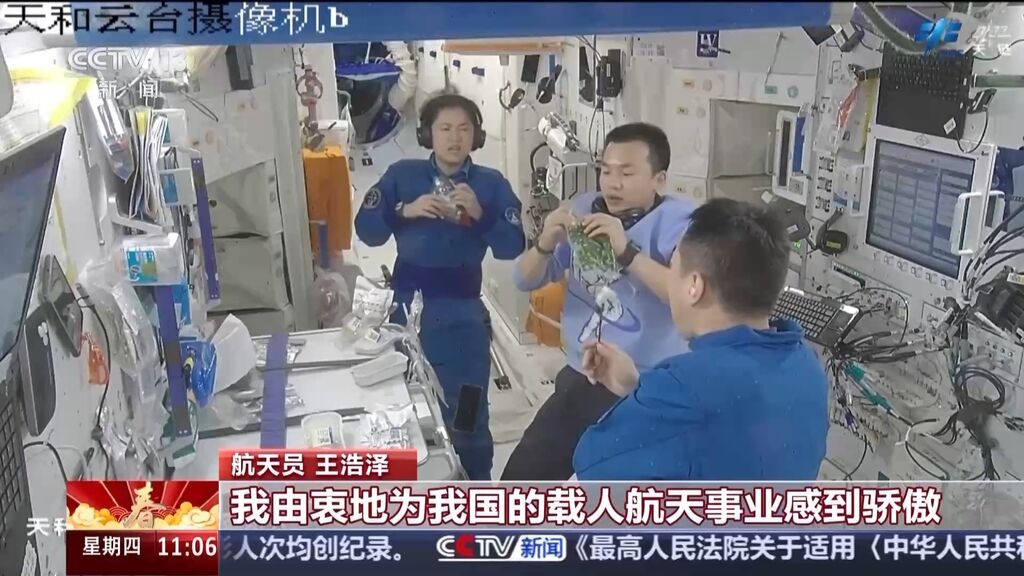 目前,我們乘組承擔的各項空間科學實驗正在穩(wěn)步推進。按照計劃,我們將重點在空間生命科學、微重力基礎(chǔ)物理、空間材料科學、航天醫(yī)學、航天新技術(shù)等領(lǐng)域開展空間科學研究與技術(shù)試驗。我們一定會密切配合,乘組一心,天地一心,精心操作,確保后續(xù)任務圓滿完成。