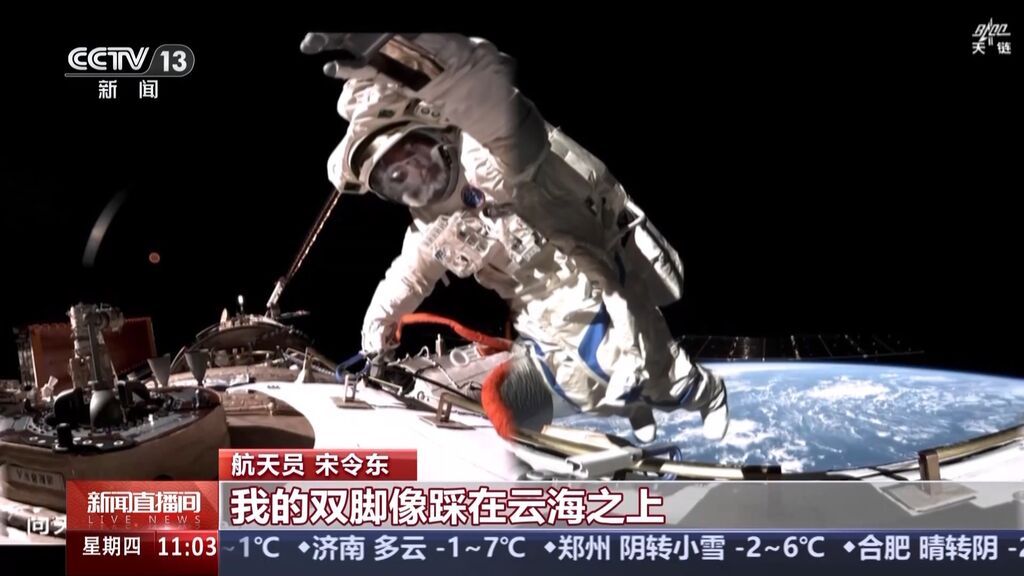 在出艙之前,我暢想過很多次出艙時的場景,但是當我真正身著飛天服,打開艙門看到地球的那一刻,我還是被深深地震撼到了,尤其是我攀爬在艙壁上,我的雙腳像踩在云海之上。當我在欣賞太空美景的同時,也深深地感受到我們這份事業(yè)的厚重與偉大。