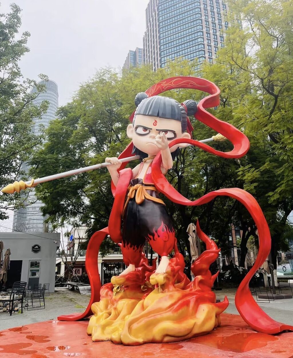 同時(shí),還有一座6米高的哪吒雕塑現(xiàn)身成都交子商圈,動(dòng)畫融入現(xiàn)實(shí),成為特色打卡新地標(biāo)。