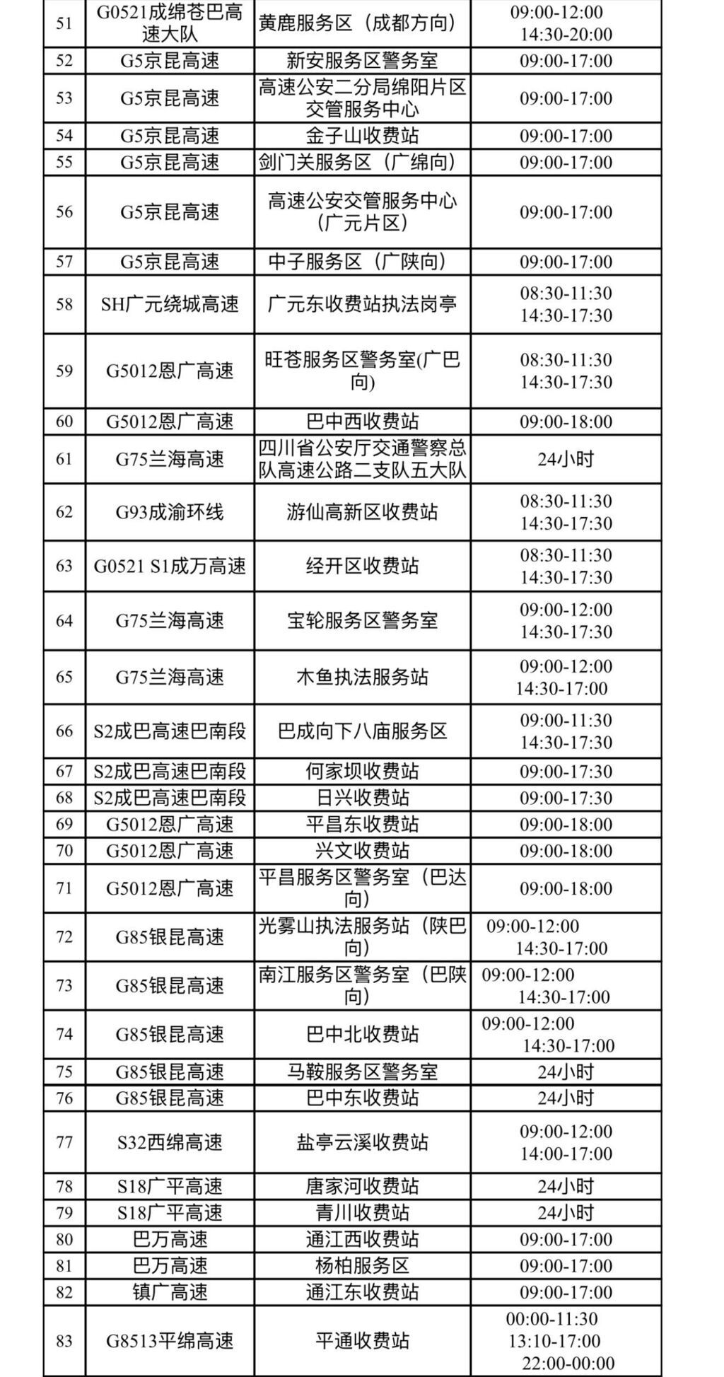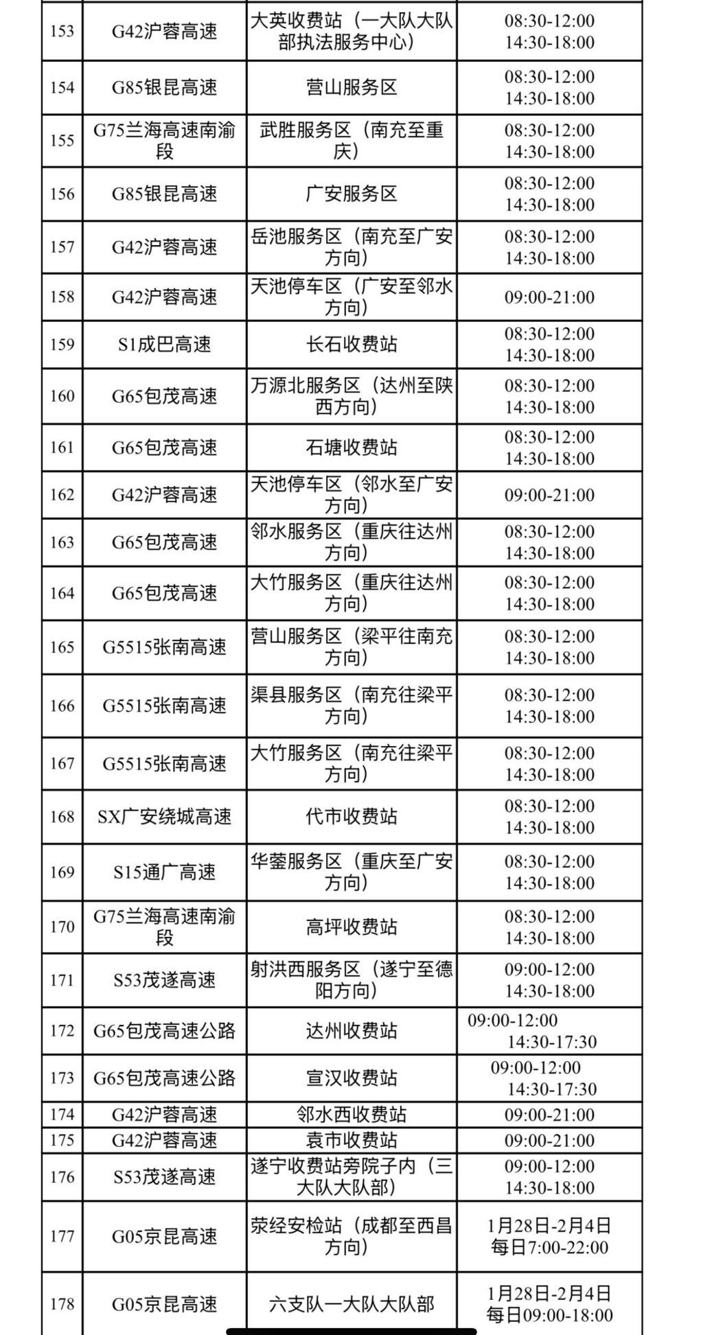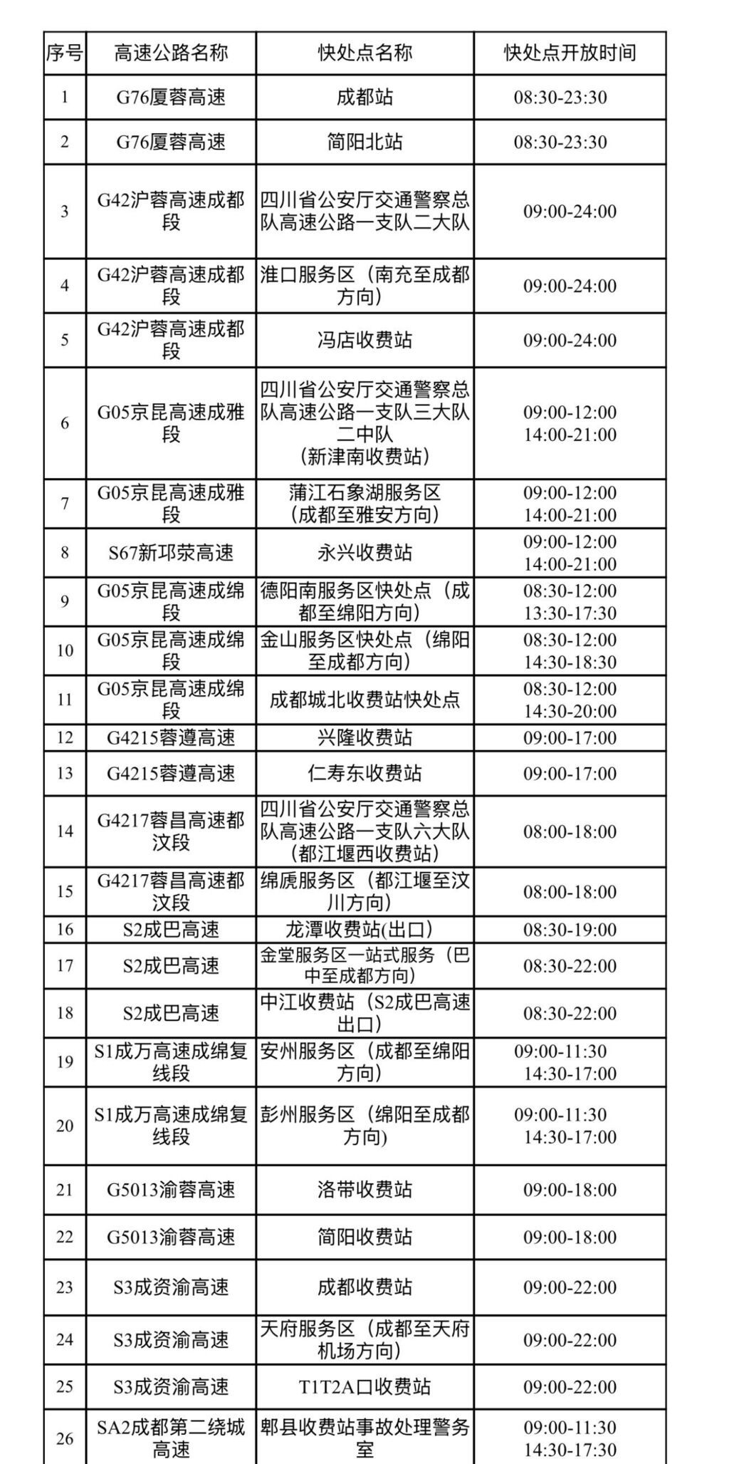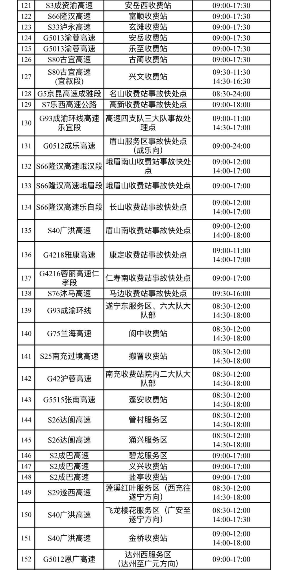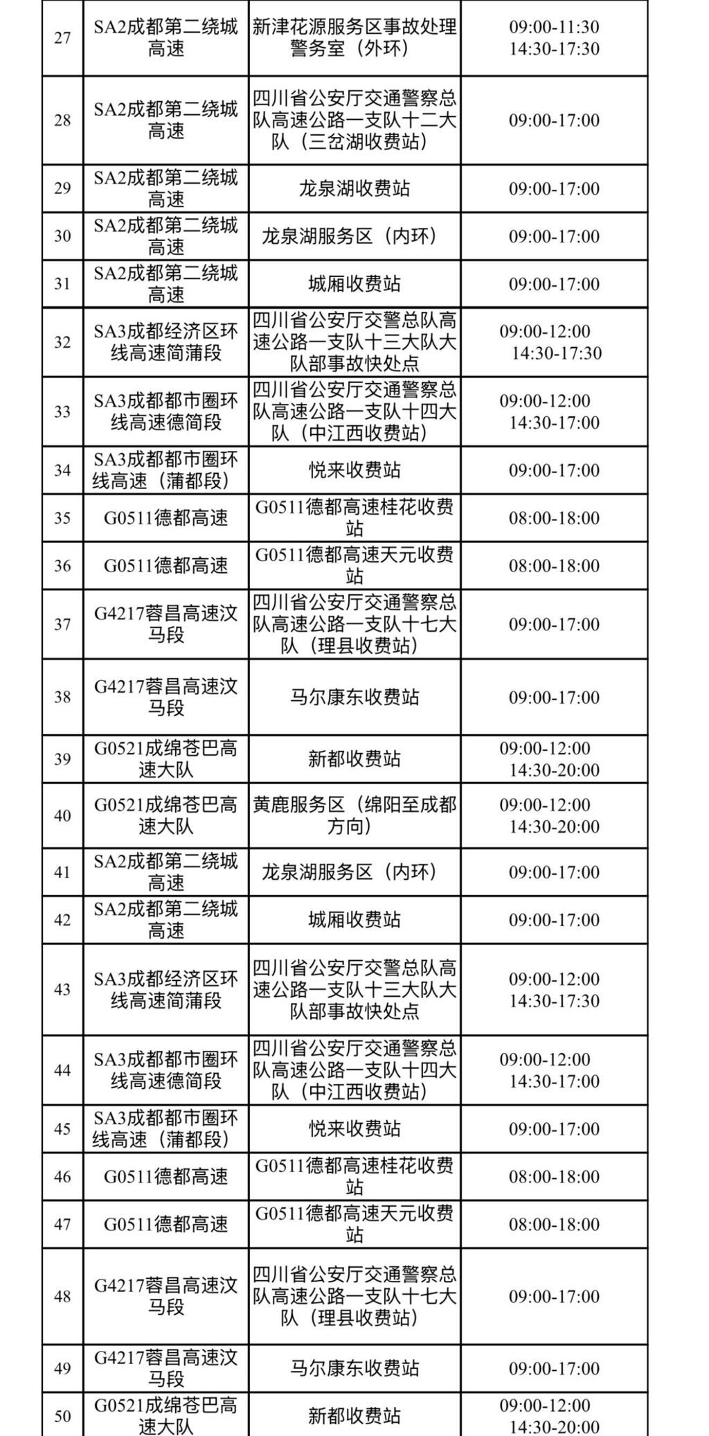 2月3日,記者從四川公安交警總隊(duì)獲悉,為進(jìn)一步做好春節(jié)假期道路交通安全管理工作,保障廣大人民群眾平安便捷返崗,全省在高速公路服務(wù)區(qū)、收費(fèi)站及高速公安執(zhí)法站等場所設(shè)置道路交通事故快處快賠臨時(shí)服務(wù)點(diǎn)193個(gè),為節(jié)日期間群眾出行提供全方位、高效的道路交通事故認(rèn)定、定損、理賠等道路交通事故快處快賠服務(wù)。