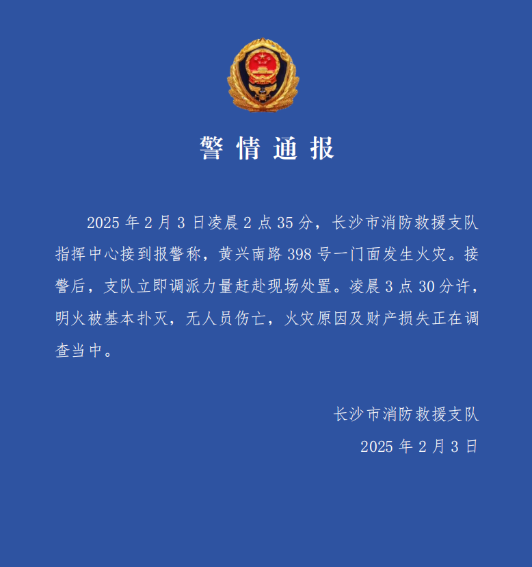 ·長沙一門面凌晨發(fā)生火災(zāi),無人員傷亡。