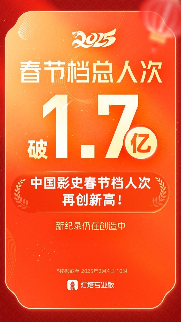 ·刷新影史紀(jì)錄,2025年春節(jié)檔總觀影人次突破1.7億。