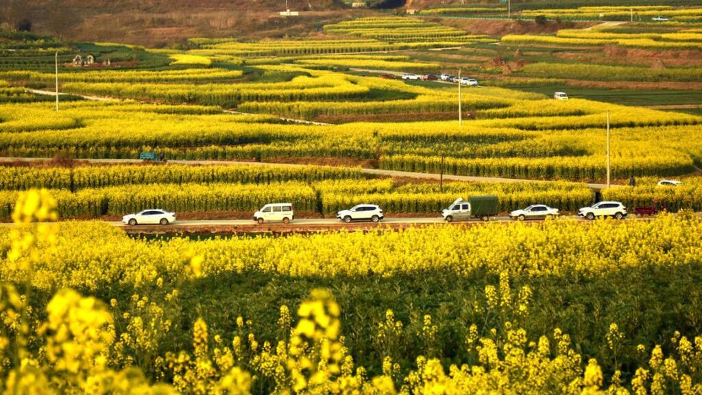 在云南省保山市隆陽區(qū)丙麻鄉(xiāng),3.5萬畝油菜花迎春綻放。層層疊疊的梯田上,盛開的油菜花鋪滿了山坡,構(gòu)成一幅鄉(xiāng)村田園畫卷。