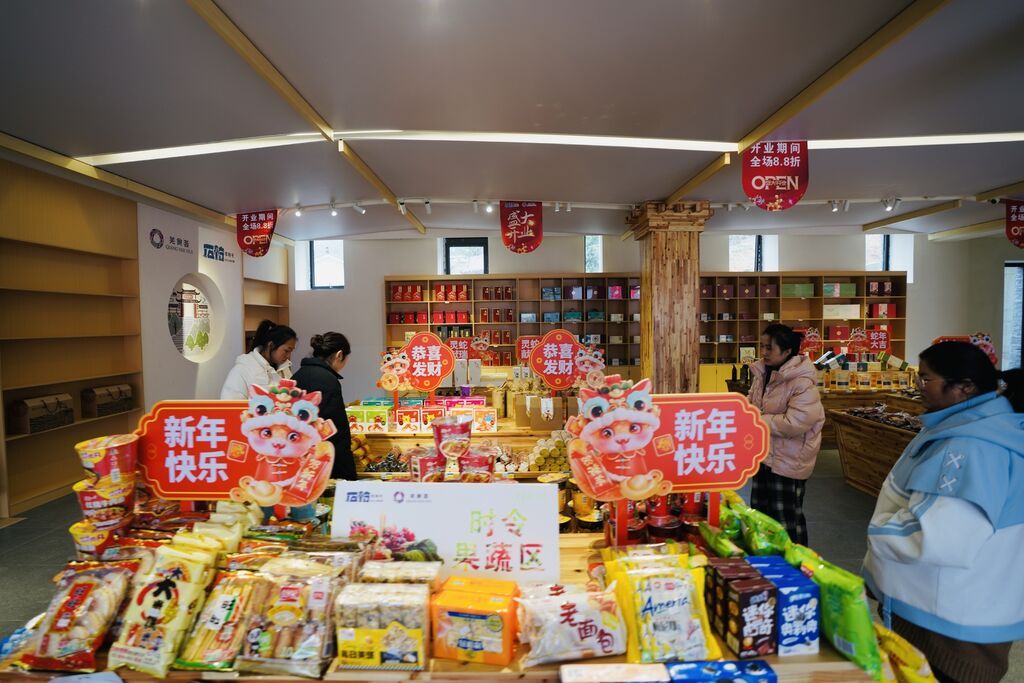 整個片區(qū)融合發(fā)展的最新成果,就是石椅羌寨對面的一棟兩層樓建筑。走進(jìn)這座剛剛啟動不久的鄉(xiāng)村振興先行區(qū)農(nóng)文旅交流中心,各式各樣的農(nóng)副特產(chǎn)擺滿了一樓的十幾個柜臺。雖然也銷售臘肉香腸等,但有別于農(nóng)戶自產(chǎn)自銷的袋裝臘肉香腸,這里的產(chǎn)品都有著漂亮的包裝。以最受游客歡迎的茶葉為例,柜臺上擺著綠茶、紅茶等20多款產(chǎn)品,其產(chǎn)地遍布周邊多個鄉(xiāng)鎮(zhèn)?!斑@里是整個先行區(qū)農(nóng)特產(chǎn)品的集中展示窗口,未來還將設(shè)置一個大屏幕,方便游客在這里了解周邊各個景區(qū),包括路線、特色亮點,還可以訂票。”工作人員說。