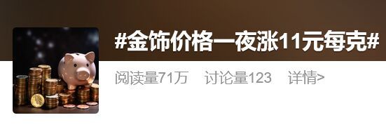 2月5日,話題“金飾價(jià)格一夜?jié)q11元每克”登上熱搜。