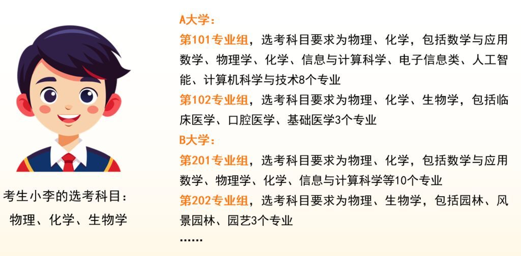 首選科目和再選科目的組合,即“1+2”決定著考生能夠報(bào)考哪些院校專業(yè)組。