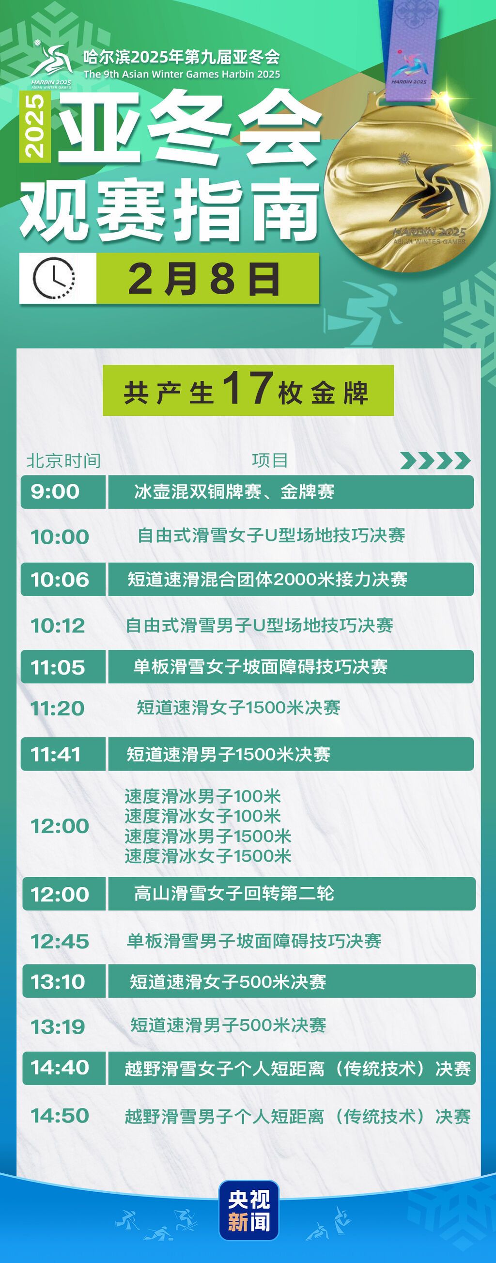 在短道速滑的賽場(chǎng)上,2月8日還會(huì)決出男女1500米、男女500米共4枚金牌。中國(guó)隊(duì)在每個(gè)項(xiàng)目上均有三名選手順利闖入半決賽。速度滑冰賽場(chǎng)將決出男女100米、男女1500米共4枚金牌。擔(dān)任哈爾濱亞冬會(huì)開幕式中國(guó)體育代表團(tuán)旗手的寧忠?guī)r,將向男子1500米金牌發(fā)起沖擊。自由式滑雪女子U型場(chǎng)地技巧比賽,冬奧冠軍谷愛凌因傷退賽,中國(guó)隊(duì)“00后”小將李方慧、張可欣將向獎(jiǎng)牌發(fā)起沖擊。冰壺賽場(chǎng),首次搭檔參加混雙比賽的中國(guó)組合王智宇/韓雨在循環(huán)賽階段五戰(zhàn)全勝,但半決賽不敵韓國(guó)組合,無(wú)緣決賽,將與菲律賓選手爭(zhēng)奪銅牌。