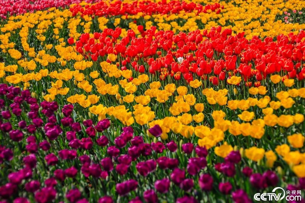 昆明撈漁河國家濕地公園,第十屆郁金香花展,斑斕大地如鋪錦毯。