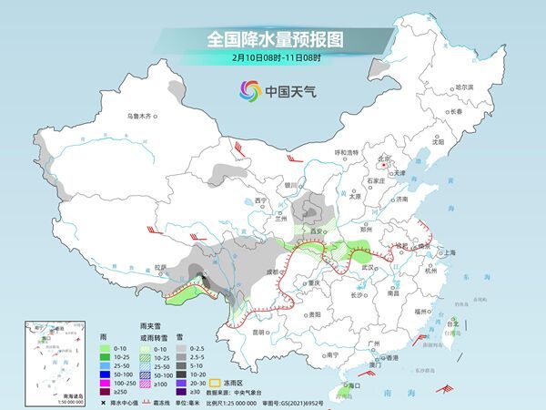 內(nèi)蒙古東北部、新疆北疆東部和南疆西部山區(qū)、西藏南部和東部、青海南部、甘肅河西、川西高原中北部、云南西北部等地部分地區(qū)有小到中雪或雨夾雪。西藏南部、陜西南部、河南南部、湖北北部和西部、海南島東北部、臺灣島東部等地部分地區(qū)有小雨。