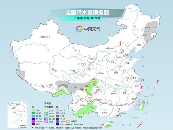 今天(2月8日),全國雨雪將有所減少,主要出現(xiàn)在四川、貴州、云南、西藏等地,中東部大部多晴朗干燥天氣。隨著寒潮繼續(xù)南下,降溫區(qū)域也進(jìn)一步南壓,江南不少地方最高氣溫將創(chuàng)今冬以來新低。