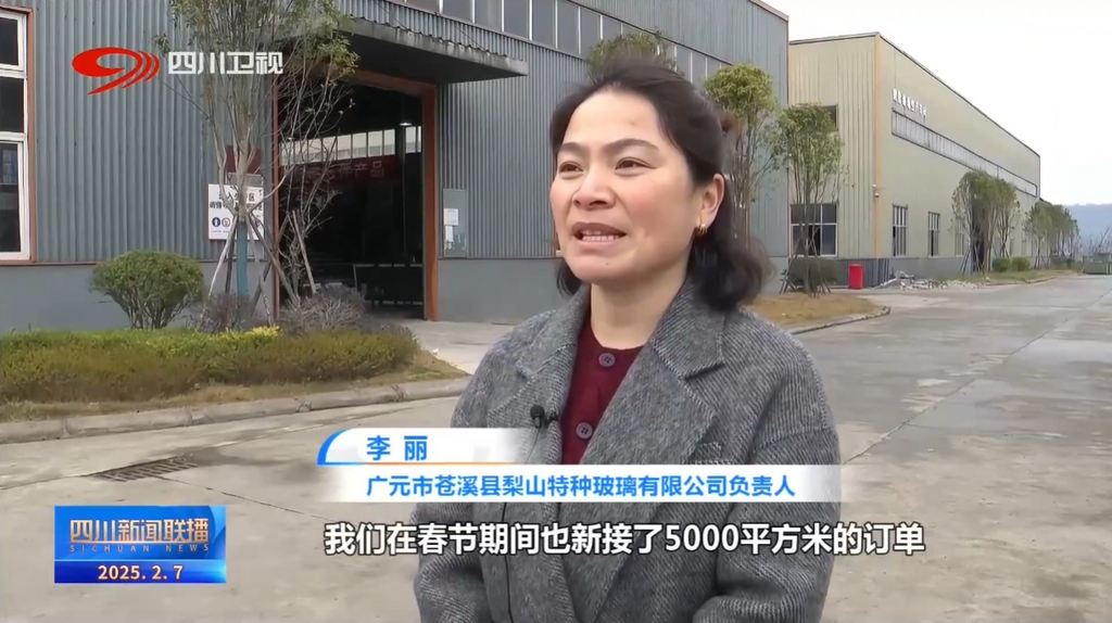 廣元市蒼溪縣梨山特種玻璃有限公司負(fù)責(zé)人 李麗:我們在春節(jié)期間也新接了5000平方米的訂單。還將通過持續(xù)地創(chuàng)新投入,提早謀劃抓生產(chǎn),打好沖刺戰(zhàn)。