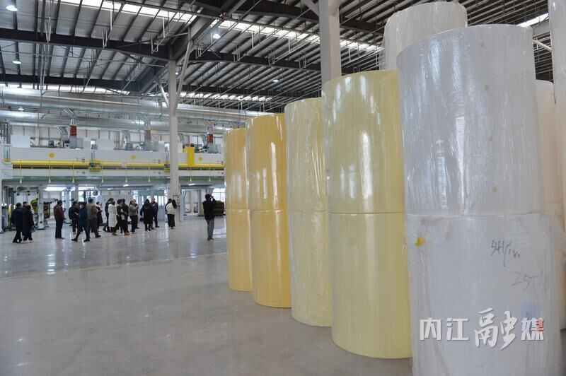 2月7日,“萬千氣象看四川”主題采訪團走進位于內(nèi)江市東興經(jīng)開區(qū)的晶華膠粘新材料西南生產(chǎn)基地,鋼結(jié)構(gòu)廠房內(nèi),機器有序運行,高速涂布線、自主設(shè)計造紙機等國內(nèi)外頂尖設(shè)備正開足馬力生產(chǎn)。