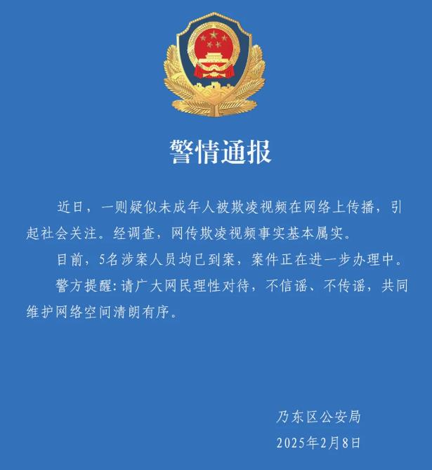 ·西藏警方:網(wǎng)傳欺凌視頻基本屬實(shí),5名涉案人員均已到案。