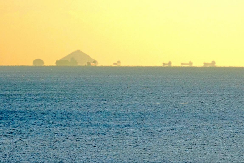 2月8日清晨,強(qiáng)冷空氣過(guò)境,山東青島海濱現(xiàn)“海滋”景觀,島嶼、輪船懸浮海面。