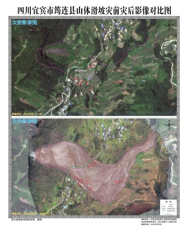 ·截至2月9日11時(shí),四川宜賓筠連山體滑坡已造成1人遇難,28人失聯(lián)。災(zāi)前災(zāi)后影像對(duì)比圖曝光。