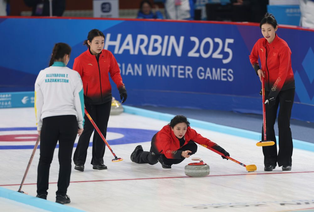 中國(guó)女隊(duì)當(dāng)日迎來(lái)一日兩賽,晚場(chǎng)比賽的對(duì)手是哈薩克斯坦隊(duì)。開局后,中國(guó)隊(duì)先進(jìn)入狀態(tài),前兩局得到5分,哈薩克斯坦隊(duì)在第三局后手拿到2分,之后兩局中國(guó)隊(duì)又得4分,將分差進(jìn)一步拉大。第六局,哈薩克斯坦隊(duì)?wèi){借最后一投的完美出擊得到2分,但第七局中國(guó)隊(duì)再拿2分,以11:4的比分奠定勝局,哈薩克斯坦隊(duì)提前一局握手認(rèn)輸。