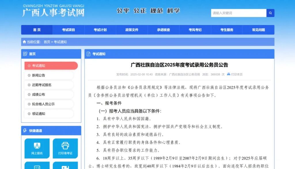 近日,《廣西壯族自治區(qū)2025年度考試錄用公務(wù)員公告》發(fā)布?!豆妗访鞔_,退役軍人有專崗。