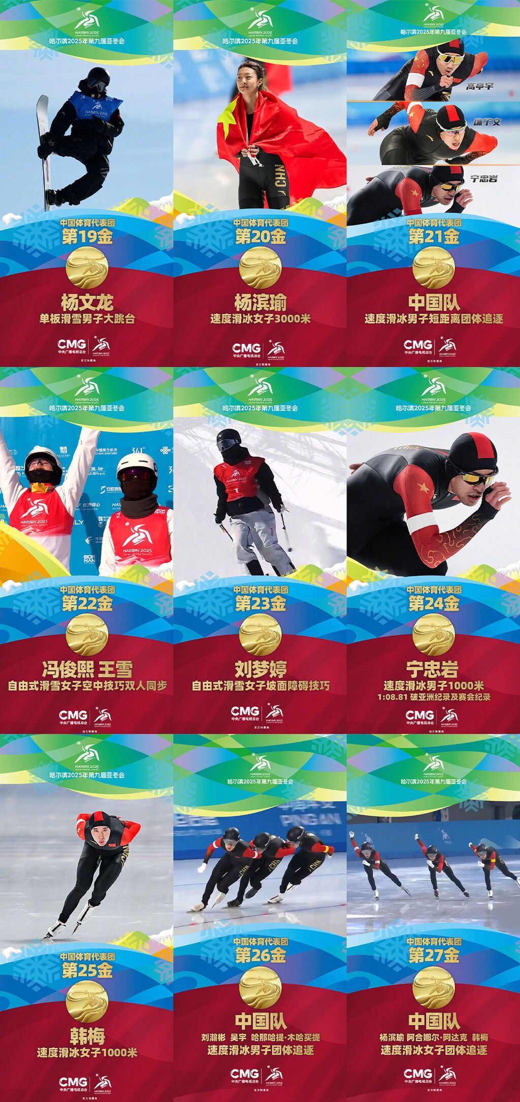今天是哈爾濱亞冬會開幕后的第四個比賽日,在3個分項上產(chǎn)生10枚金牌。截至目前,中國隊已在亞冬會收獲27枚金牌,集齊了三組金牌九宮格,向第四組九宮格發(fā)起挑戰(zhàn)。
