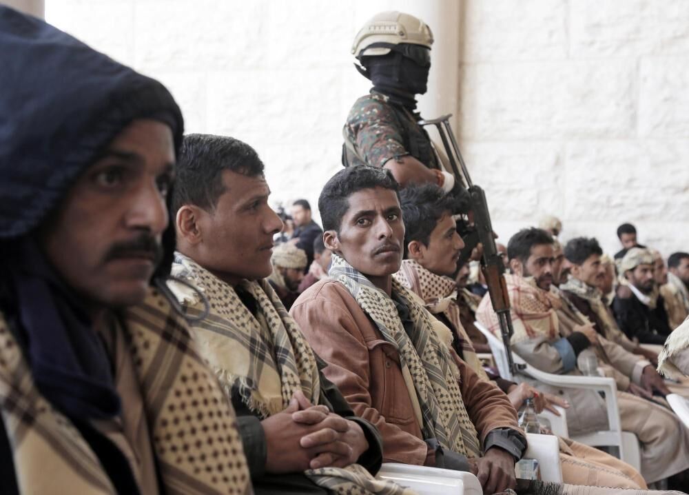 1月25日,在也門首都薩那,獲釋的也門政府軍被扣押人員參加新聞發(fā)布會(huì)。新華社發(fā)(穆罕默德·穆罕默德攝)