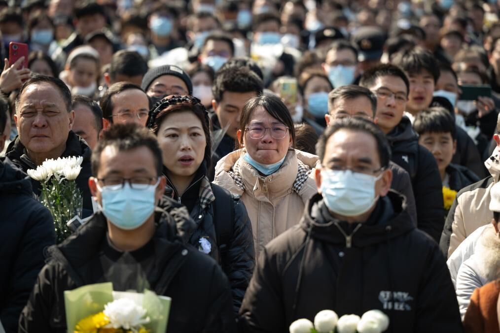 武昌殯儀館告別廳外的廣場上站滿群眾。從五湖四海趕來的人們手捧菊花,自發(fā)前來送別黃旭華。