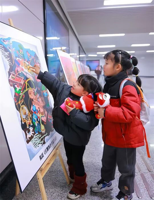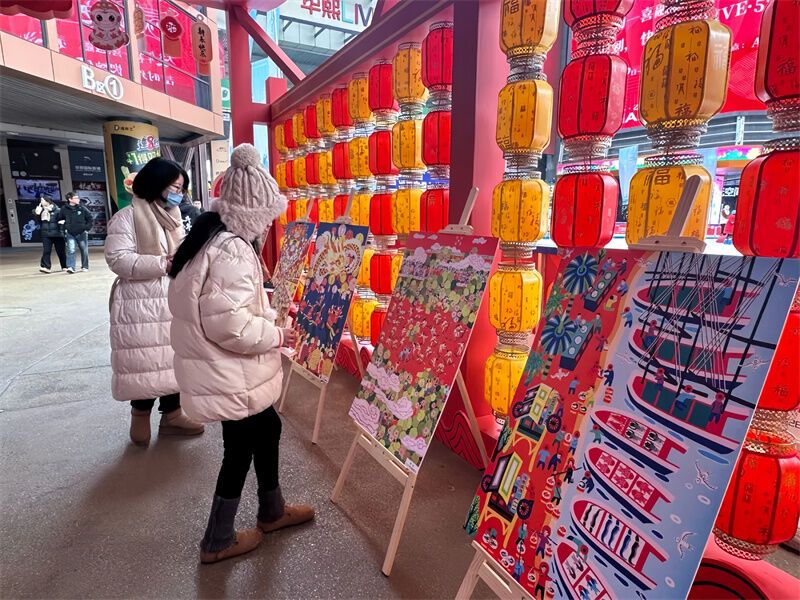 在年畫展示區(qū)內,80余幅年畫精品整齊陳列,既有描繪傳統民俗風情的經典之作,透過細膩筆觸,將往昔熱鬧的春節(jié)場景、質樸的民間生活一一展現,讓人仿若穿越時空;又有展現新時代風貌的創(chuàng)新作品,以新穎視角融入現代元素,勾勒出城市發(fā)展、鄉(xiāng)村振興的嶄新畫卷。不少市民與游客慕名而來,他們在一幅幅色彩鮮艷、寓意吉祥的年畫前駐足觀賞,臉上洋溢著對中華優(yōu)秀傳統文化的喜愛之情,紛紛拿出手機拍照“打卡”。人群中一位家長感慨道:“賞年畫活動真的太有意義了,小朋友能借此了解年畫背后的文化寓意,感受地方特色文化。”在非遺展示區(qū),市民游客積極參與互動,沉浸式體驗獨特非遺“年味”。
