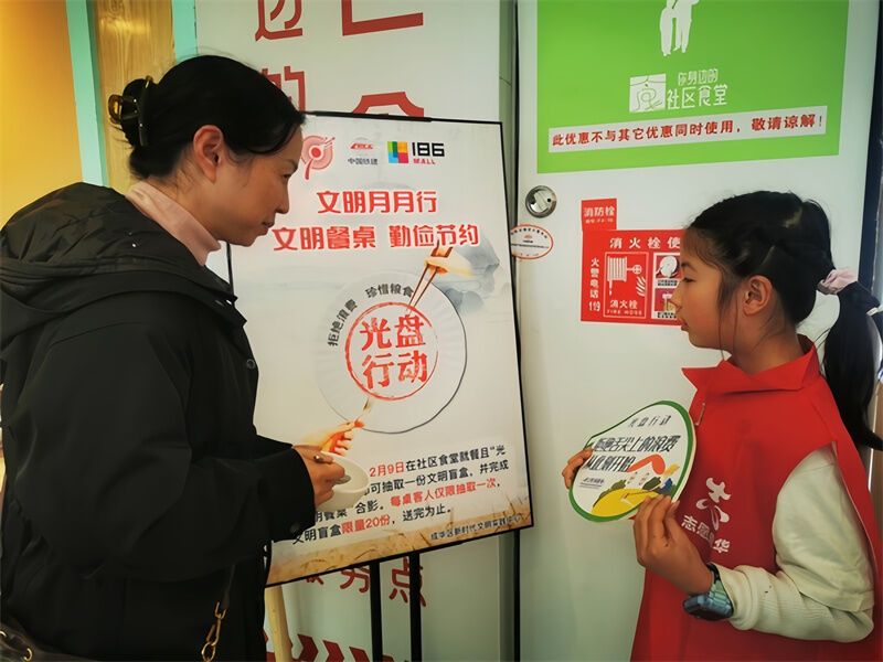 2月7日,正月初十,由成都市成華區(qū)精神文明建設(shè)辦公室、成都市成華區(qū)新時代文明實踐中心聯(lián)合中鐵房地產(chǎn)集團城市運營管理有限公司成都分公司、二仙橋街道新時代文明實踐所、華林社區(qū)新時代文明實踐站共同發(fā)起的“文明月月行——文明餐桌勤儉節(jié)約”主題活動,在中國鐵建廣場186MALL的10家美食餐飲店同步展開。每家店內(nèi)都擺放了醒目的“文明餐桌?勤儉節(jié)約”宣傳海報,文明實踐志愿者們穿梭其間,向就餐的市民發(fā)放宣傳資料,引導他們按需點餐,倡導勤儉節(jié)約、文明用餐的生活方式。