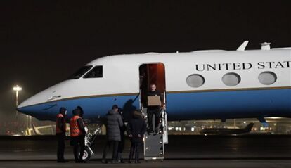 視頻畫面顯示,俄羅斯公民亞歷山大·文尼克乘坐美國空軍飛機(jī)抵達(dá)莫斯科,以及美國公民馬克·福格爾飛往美國的視頻。(總臺(tái)記者 王新?。?/p>