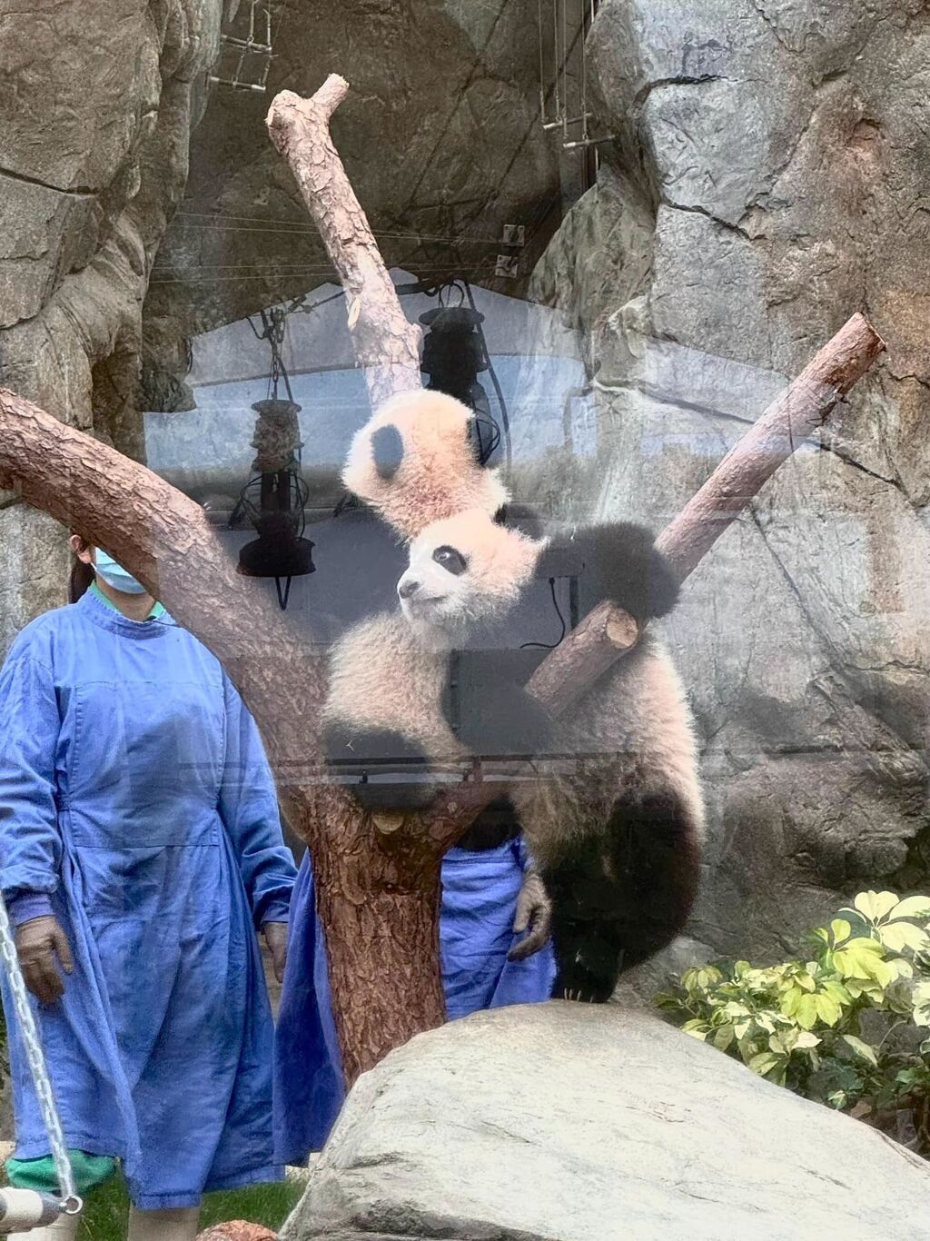 兩只大熊貓寶寶于2024年8月15日出生,是中央政府于2007年贈送予香港特區(qū)的大熊貓“盈盈”和“樂樂”誕下的一對龍鳳胎,也是首對于香港出生的大熊貓。過去半年,龍鳳胎寶寶健康成長,體重由出生時只有約120克上升至現(xiàn)時超過12公斤,精靈可愛、活潑好動,它們于公園內的棲息地“大熊貓之旅”的適應情況也十分理想。