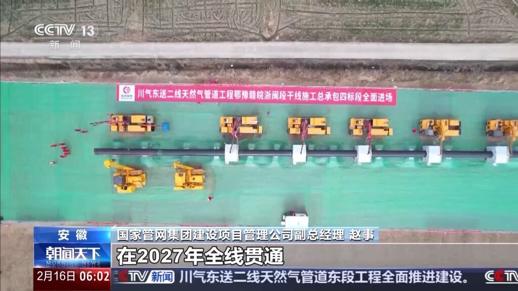 國家管網(wǎng)集團建設項目管理公司副總經(jīng)理 趙事:西段工程是在2023年開工建設,目前正在全力推動建設的是東段工程。西段工程截止到目前,威遠到銅梁段已經(jīng)完成焊接220公里,綜合進度超70%,預計川氣東送二線整個工程在2027年全線貫通。