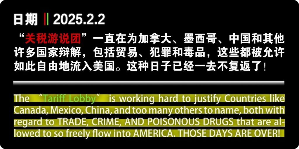2月3日,加拿大和墨西哥在邊境問(wèn)題上對(duì)美國(guó)讓步,美國(guó)同意暫緩對(duì)加拿大和墨西哥的關(guān)稅。