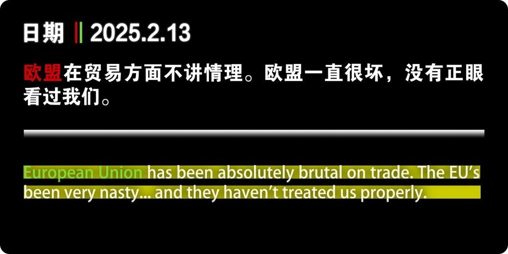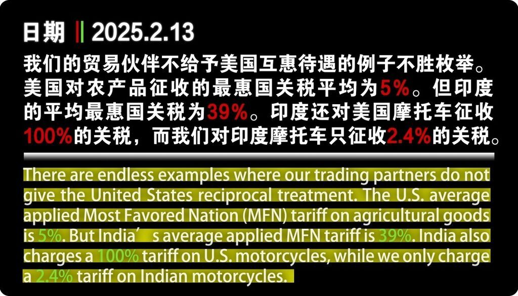 當(dāng)?shù)貢r(shí)間2月13日,特朗普宣布了最新的關(guān)稅決定:在未來(lái)幾周或幾個(gè)月內(nèi)對(duì)其他國(guó)家加征“對(duì)等關(guān)稅”。這意味著,美國(guó)的貿(mào)易伙伴,全部面臨著新的關(guān)稅威脅。