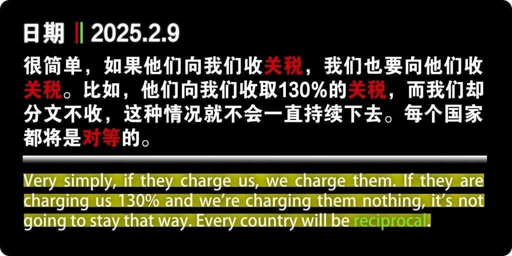 此前,特朗普在接受媒體采訪時(shí)說(shuō)的是“報(bào)復(fù)關(guān)稅”(retribution tariff),而不是“對(duì)等關(guān)稅”(reciprocal tariff)。