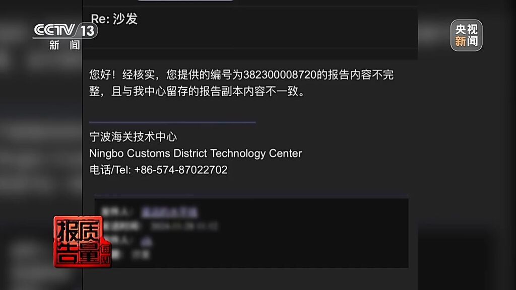 寧波海關(guān)辦公室副主任 徐焱缽:技術(shù)中心是我們下屬的一個單位,我們也了解了一下,他們說這個報告、這個編號檢測報告不是我們這邊出的。