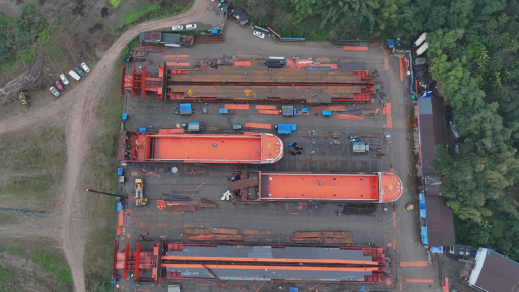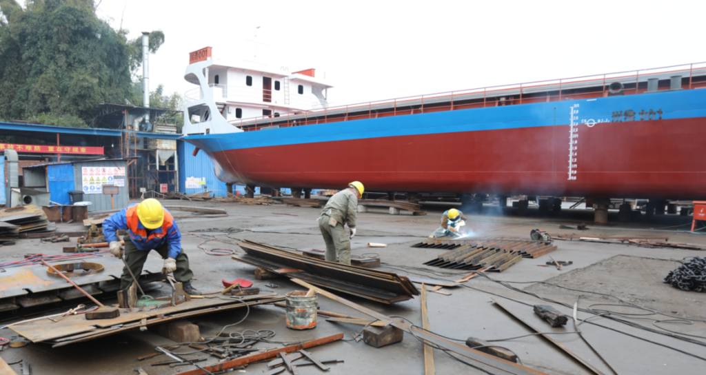 走進(jìn)廠區(qū),在建船舶排列整齊,工人們熟練操作著各種設(shè)備,生產(chǎn)線上一片繁忙。