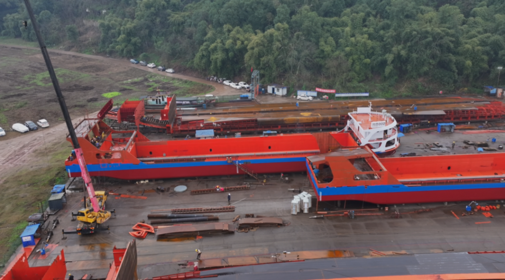 近日,在瀘州市合江縣神臂城造船廠,四川省首批6艘增程式電動集散貨船正在加緊趕制。這類船舶以“低碳高效、油電混合”為特點,被譽(yù)為“長江綠色航運新標(biāo)桿”。