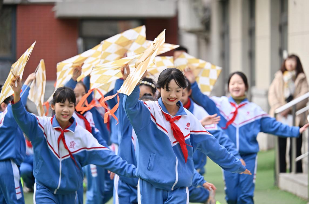 2月17日,在天津市和平區(qū)新星小學,學生們在開學典禮上表演節(jié)目。當日,全國多地中小學開學,師生迎接春季新學期。
