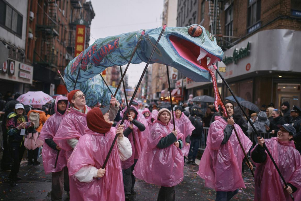 在美國紐約曼哈頓唐人街,人們參加第27屆紐約新春大游行文化節(jié),慶祝蛇年春節(jié)。