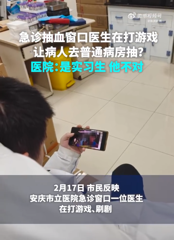 ·急診窗口醫(yī)生刷劇不給病人抽血?安慶市立醫(yī)院:是實習生,他做得不對。