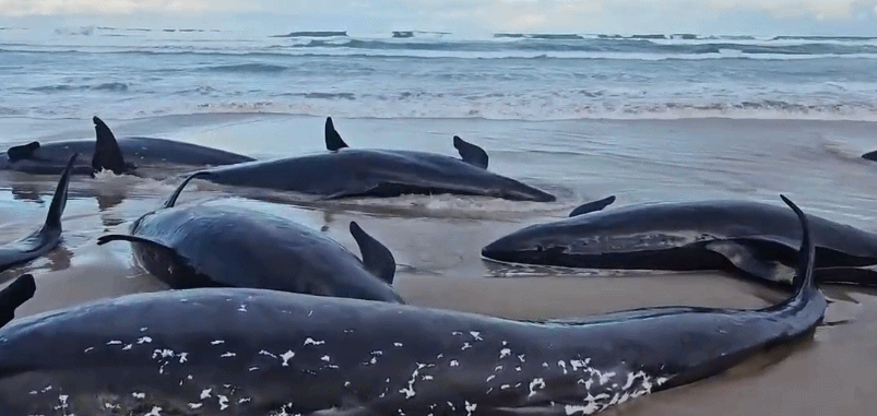 根據(jù)當(dāng)?shù)鼐用衩枋?,此次擱淺的偽虎鯨里也包括尺寸較小的幼崽。救援部門(mén)官員表示,因?yàn)槭掳l(fā)地點(diǎn)偏遠(yuǎn)難以抵達(dá),海洋條件惡劣,專業(yè)設(shè)備難以送達(dá),應(yīng)對(duì)此次擱淺的工作十分復(fù)雜。(總臺(tái)記者 王聰)